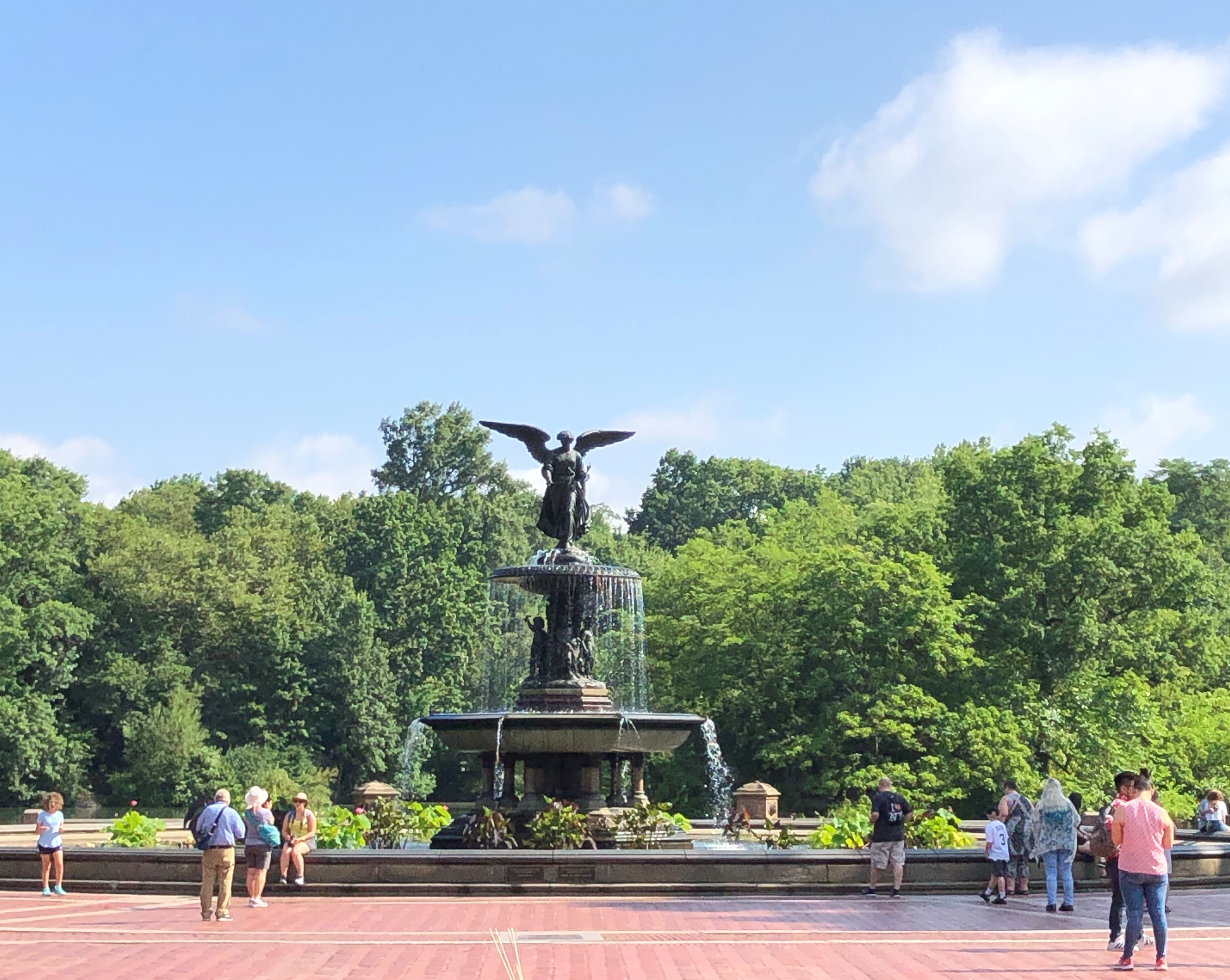 And then there is the statue, the Angel of the Waters, that represents healing. She was created by Emma Stebbins, the first woman commissioned to do a public sculpture in New York City. Vaux wanted the statue to suggest “both earnestly and playfully the idea of that central spirit of ‘Love’ that is forever active, and forever bringing nature, science, art, summer and winter, youth and age, day and night, into harmonious accord.”